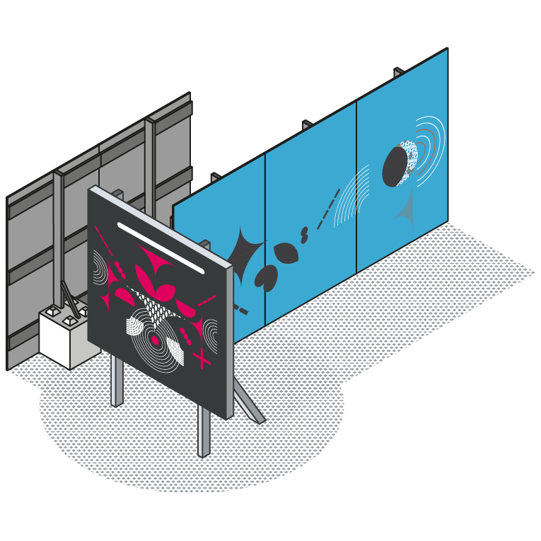 Nous concevons des panneaux de chantier réglementaires traditionnels ou numériques, des affichages publicitaires, de la signalétique de sécurité, ainsi que des solutions de lestage et de scellement fiables et durables.